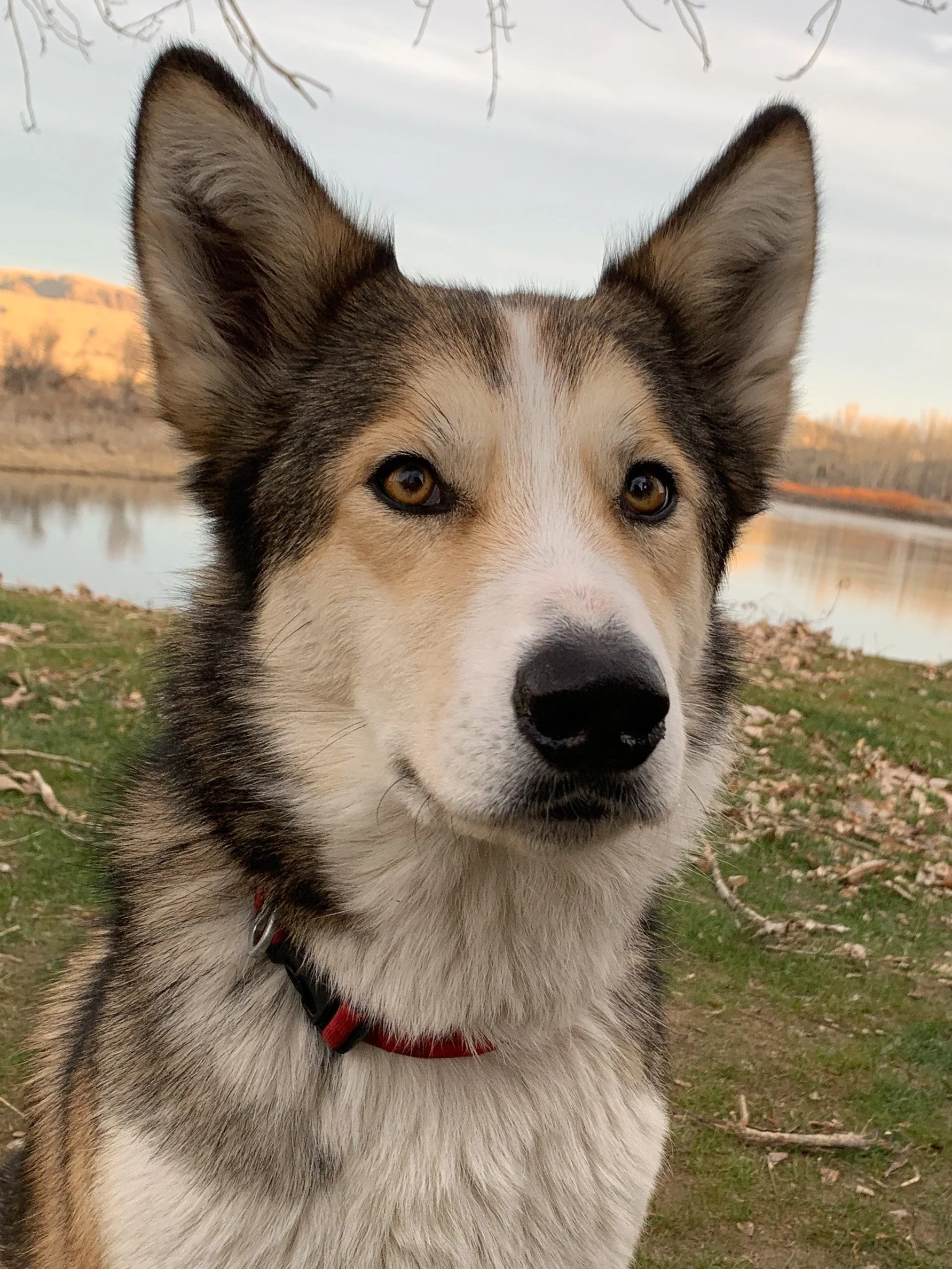 First, you’ll want to get on the floor/ground with your dog eye-level. Then try this!: